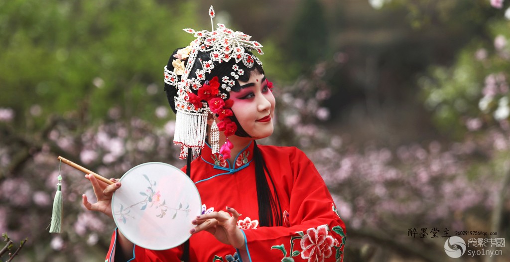 春天来了,市京剧院派了两名演员去拍桃花和梨花,因服装没有带够,《游园》拍摄只有一人参与,不能全面表达游戏园的意境,回来后斟酌再三,取名为《桃花扇》较为贴切。