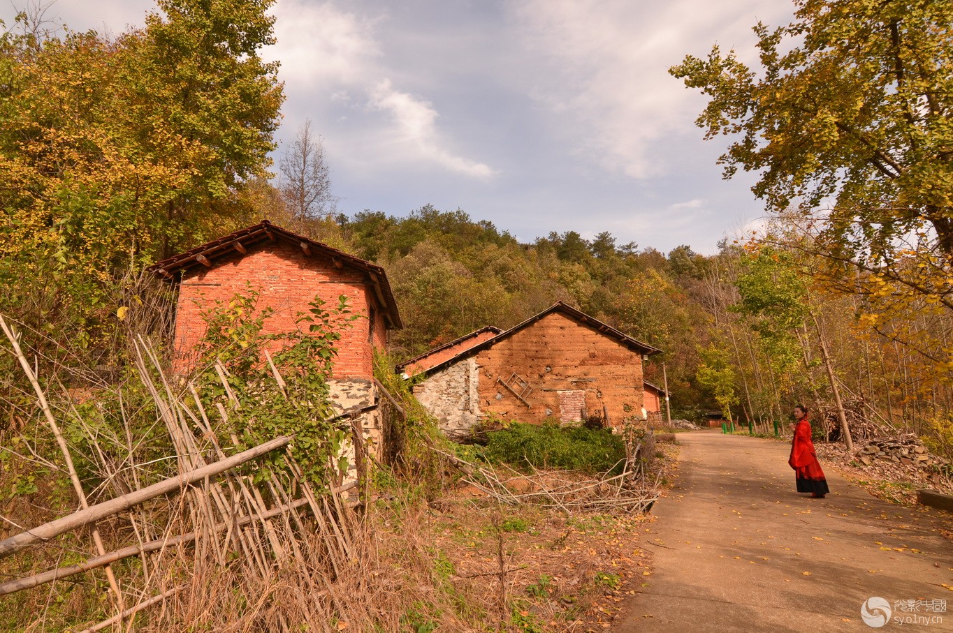 秋染山村