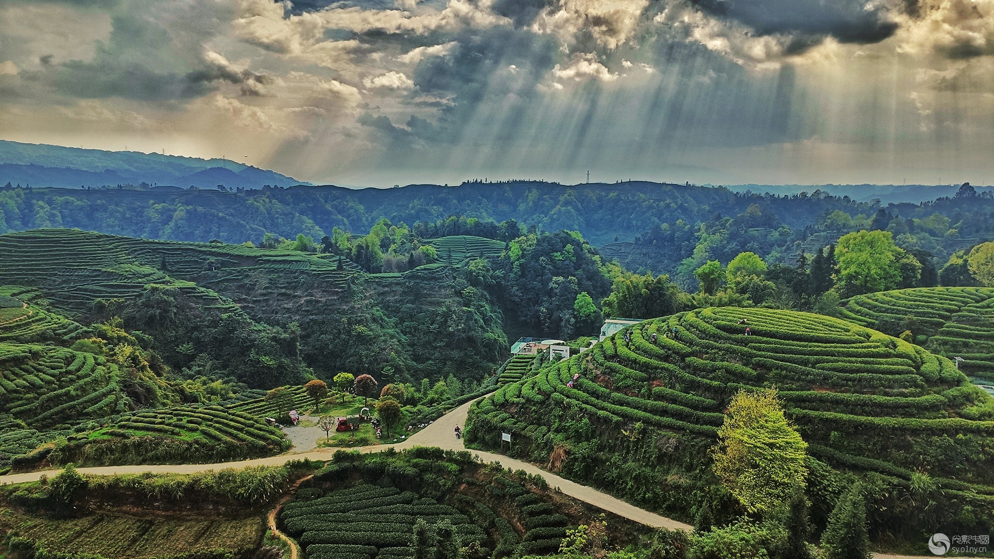 四川雅安名山,傍晚的金鼓村,在夕阳的照射下,美丽至极。