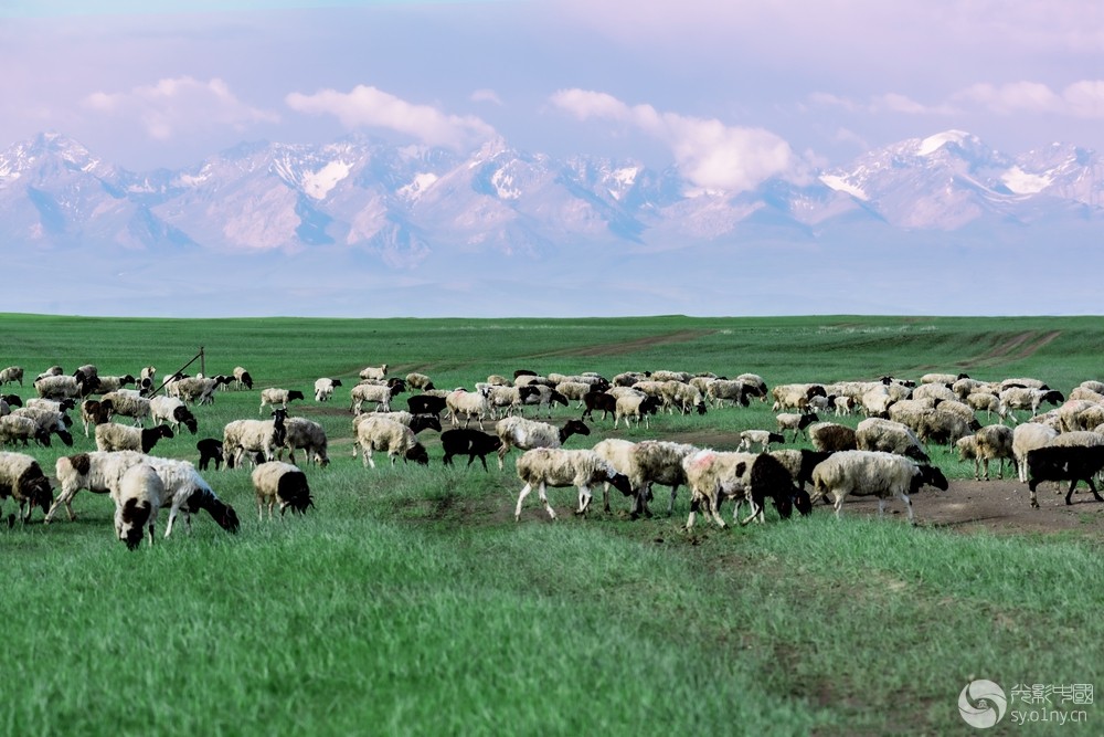 雪山下的羊群