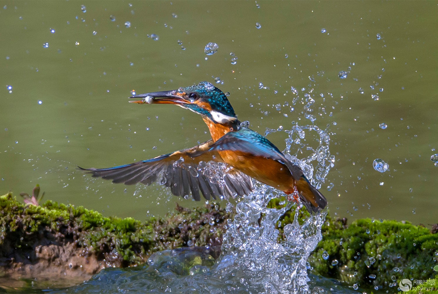翠鸟捕鱼出水