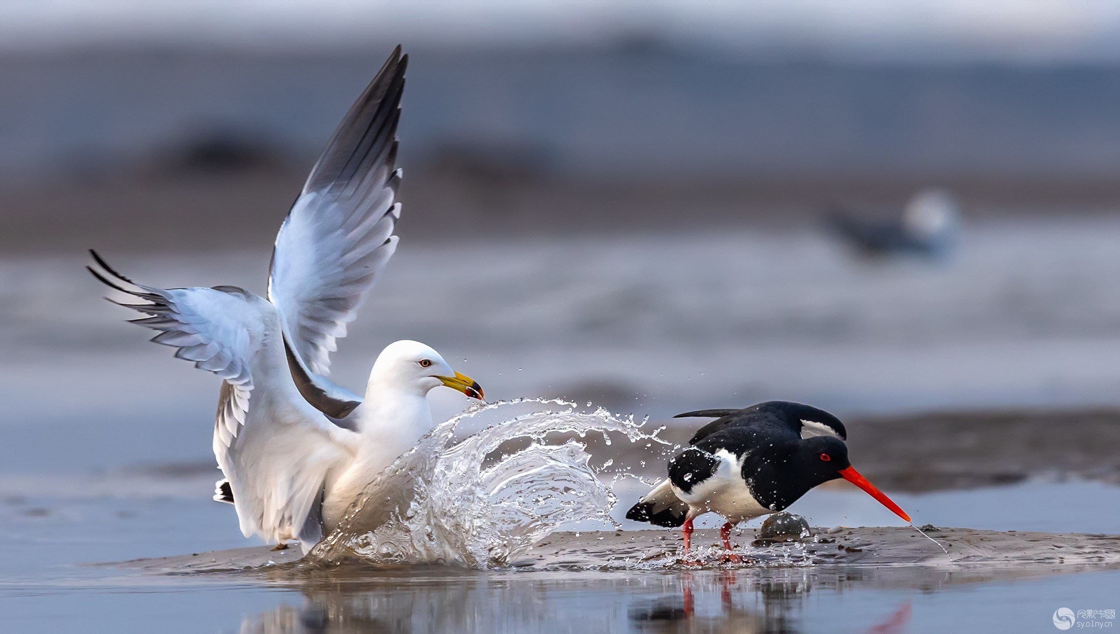 落荒而逃——黑尾鸥与蛎鹬