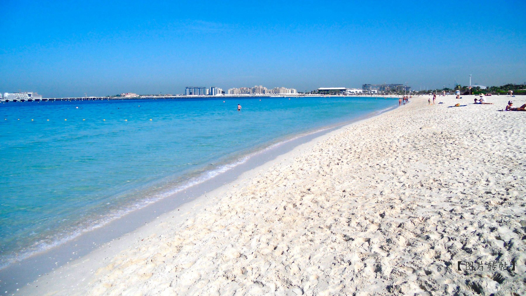 阿联酋北部濒临波斯湾,海岸线长700多公里。迪拜朱美拉海滩长约10公里,沙子很细,海水清澈见底,海水的颜色类似祖母绿,使人感觉很神奇。