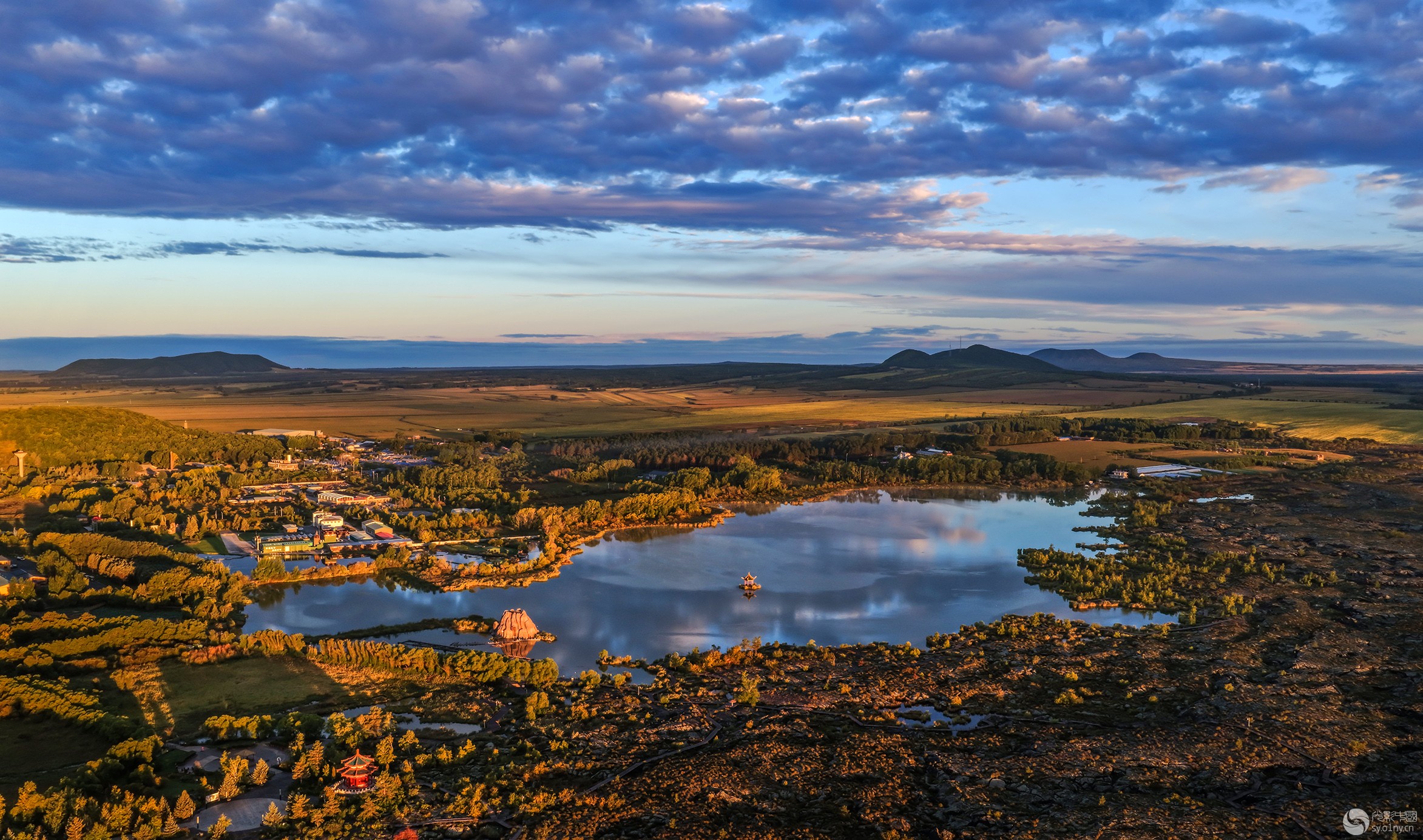 夕阳下的天池